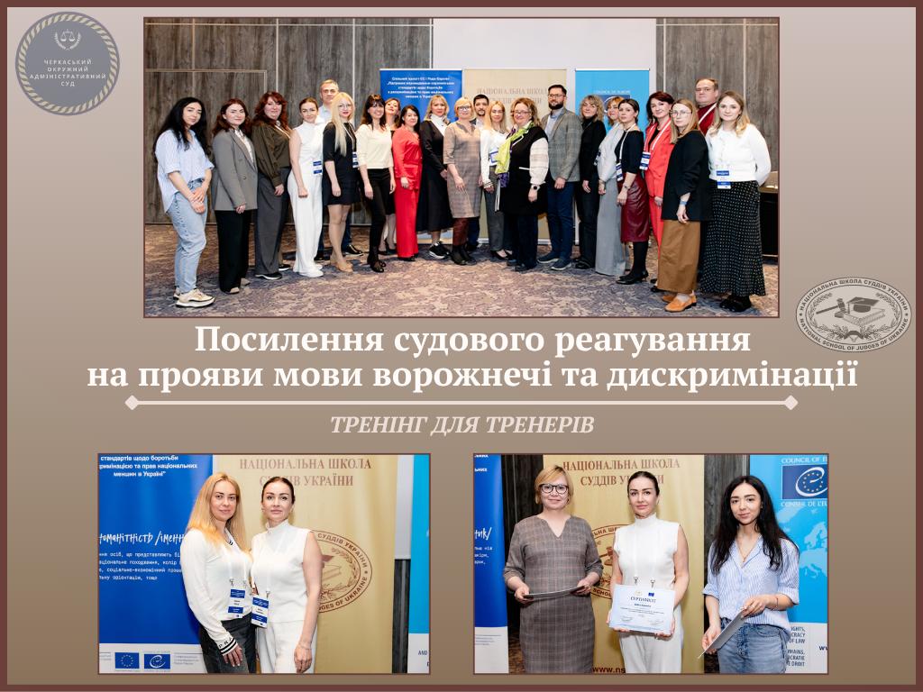 У березні – квітні 2026 року суддя Черкаського окружного адміністративного суду Анжеліка Бабич брала участь у серії навчальних заходів для суддів на тему протидії мові ворожнечі та дискримінації, організована в межах проєктів «Підтримка реформування законодавчої бази щодо національних меншин» та спільного проєкту Європейського Союзу і Ради Європи «Підтримка впровадження європейських стандартів щодо боротьби з дискримінацією та прав національних меншин в Україні».