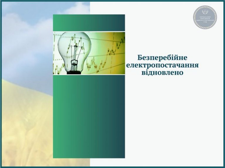 Повідомляємо Вам, що у Черкаському окружному адміністративному суді відновлено безперебійне постачання електроенергії.